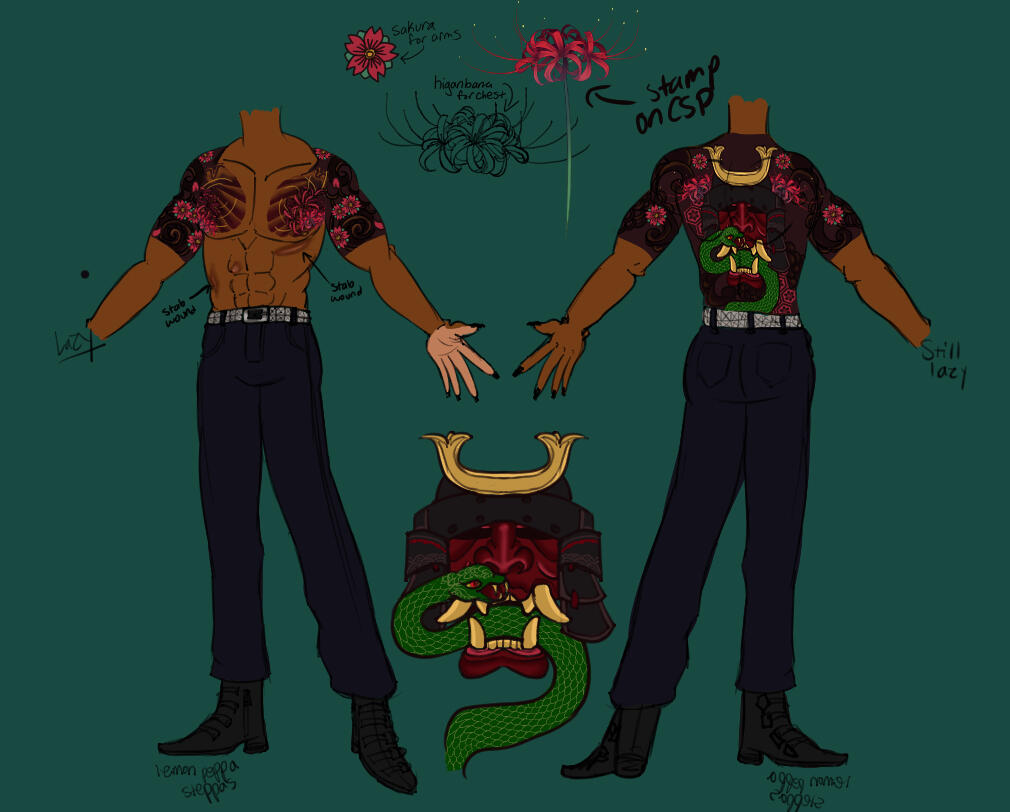 -Personality is a mix of Tatsu from Th e Way of the Househusband and Majima Goro from Yakuza/Like A Dragon (heavier on Majima)